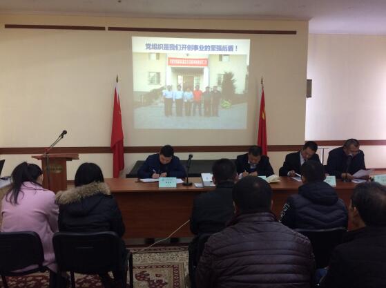 2017年11月20日在吉爾吉斯斯坦首都比什凱克,組織昌通海外黨小組成員、中層干部和入黨積極分子學(xué)習(xí)了“中國共產(chǎn)黨十九大報(bào)告”原文、學(xué)習(xí)“不忘初心 重溫焦裕祿精神”報(bào)道、重溫入黨誓詞等十九精神專題會(huì)議。